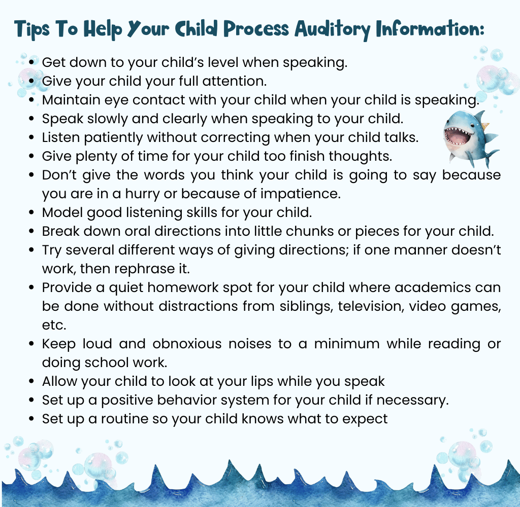 When there’s an auditory processing disorder, your child might hear background noises in a “louder” manner than other children, making it hard to focus.