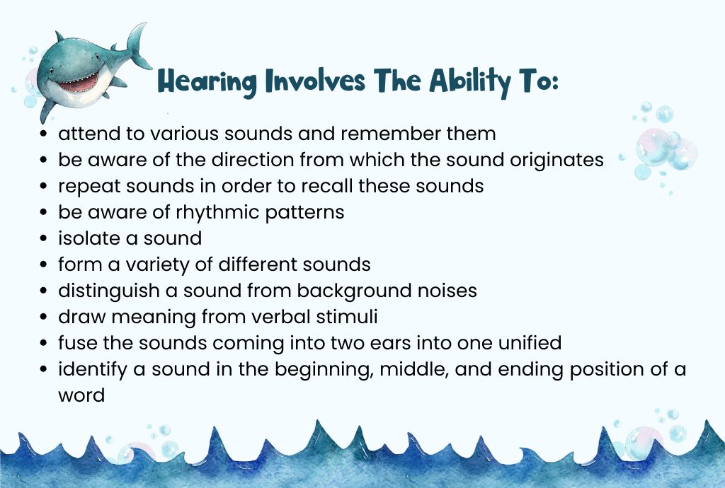 First, your child must be able to take in sounds correctly through the ears. If your child has trouble in this area, then most likely, a school hearing test would have been failed.